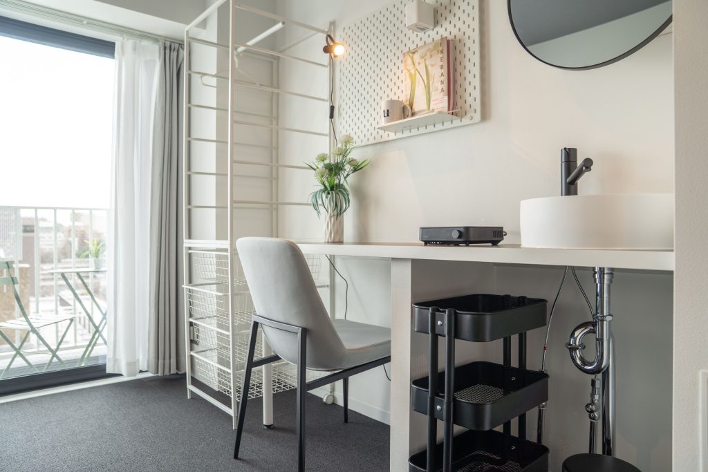 Cada habitación está equipada con inodoro y ducha, y están amuebladas con muebles y electrodomésticos, lo que facilita la mudanza.